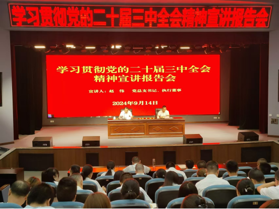 9月14日,巴中自然資源投資集團(tuán)有限公司召開(kāi)學(xué)習(xí)貫徹黨的二十屆三中全會(huì)精神宣講報(bào)告會(huì),黨總支書(shū)記、執(zhí)行董事趙偉為全體員工作專題宣講。